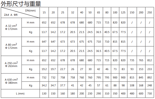 DN150-250 由 FKM 平衡膜片 +304 平衡弹簧组合而成。